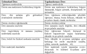 Yapılandırmacı eğitim-öğretim ortamının pek üzerinde durulmayan olgularından birisi yapılandırmacı ders olgusudur. Hiç kuşkusuz, davranışçı bir öğrenme modelinden bilişsel bir öğrenme modeli olan yapılandırmacılığa geçerken, bazı şeyleri değiştirip geliştirirken, bazılarını olduğu gibi bırakılamaz. Bu bağlamda, yapılandırmacı ders olgusu geleneksel ders olgusunun paradoksu olarak düşünülebilir. Aşağıdaki tabloda, geleneksel ders ile yapılandırmacı ders arasındaki temel farklılıklar ele alınmaktadır.